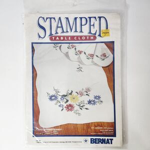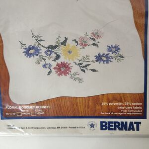 Vtg 1989 Bernat Stamped Table Runner Floral Bouquet Stamped Cross Stitch 15x45"