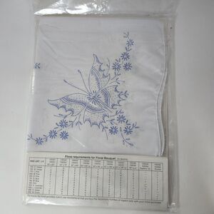 Vtg 1989 Bernat Stamped Table Runner Floral Bouquet Butterfly Stamped Cross Stitch 15x45".