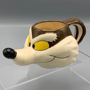 Vtg 1989 Looney Tunes Wile E Coyote Head 3D Figural Coffee Mug Road Runner