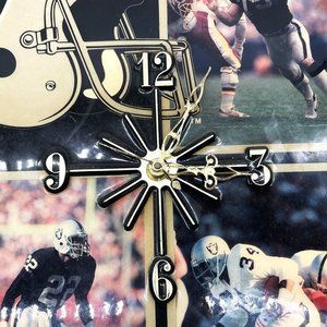 Vtg 1989 Starline Oakland Raiders NFL Wood Collage AA Battery Quartz Wall Clock