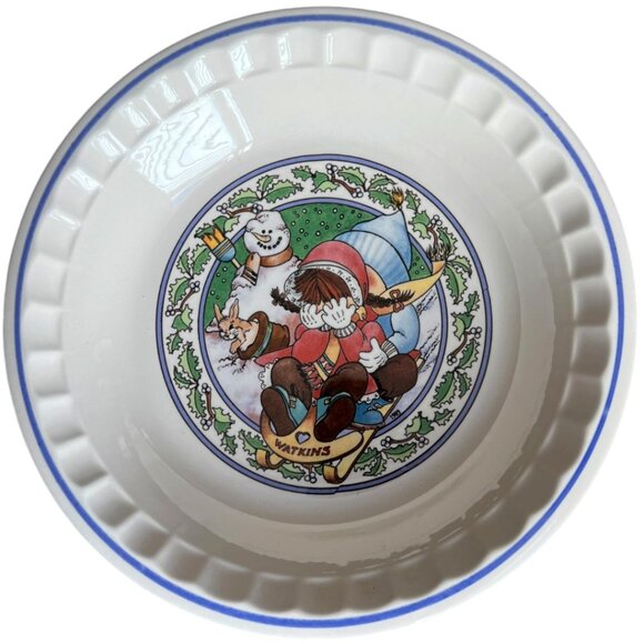 Vtg 1989 WATKINS Country Kids "Snow Magic" Ceramic Recipe Pie Plate 10.75" D