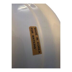 This plate includes the original sticker that reads "Made in Korea for Watkins," suggesting it has never been used.