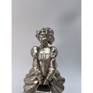 A vintage 1990 Avon Mrs Albee District Award Figurine that adds a touch of elegance to your decor. Made of high-quality pewter, this figurine showcases the intricate pattern of a woman, coated in a beautiful silver color.