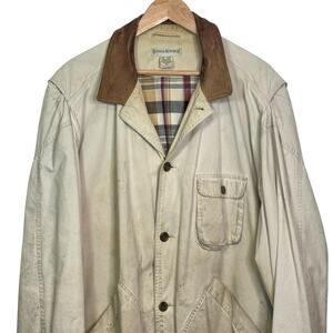 Vtg 1990's Banana Republic Khaki Leather Collar Field Chore Utility Barn Jacket