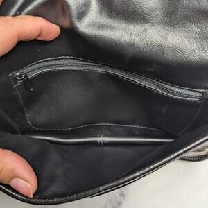 Vtg 1990s Black Metallic Bronze Croc Embossed Leather Top Flap Shoulder Bag
