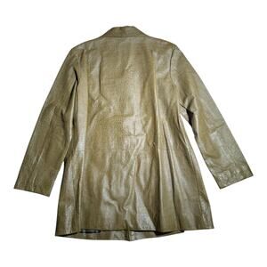 Vtg 1990s Chico's Olive Green Croc Embossed Button Up Collared Jacket 2.5 Sz L