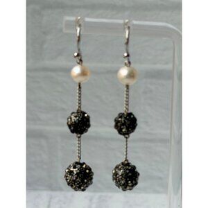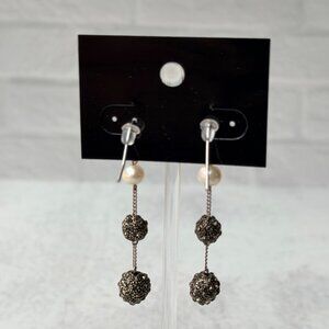 Vtg 1990s Chico’s Pearl Chain Drop Earrings Sparkle Textured Metal Ball Accents