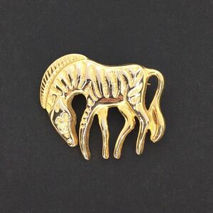 Vintage Gold Tone Zebra African Animal Pin Brooch 1990s Zoo