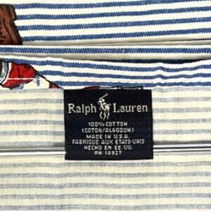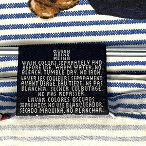 Vtg 1990's Ralph Lauren Polo Teddy Bear University Blue Striped QUEEN Flat Sheet