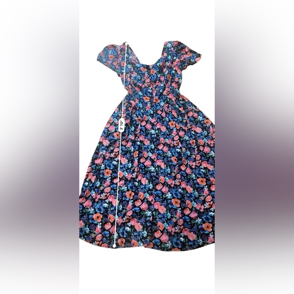Vtg 1990's Shelly Michaels Size 13/14 Floral Button Front Dress Short Sleeve
