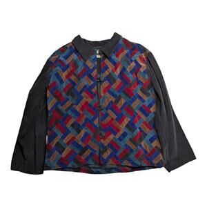Vtg 1990s Soul Mates Black Colorful Herringbone Corduroy Button Up Jacket L