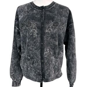 Vtg 1990s Stoneage Rockwear Stonewashed Embellished Rhinestone Snap Sweater Sz M
