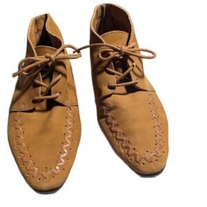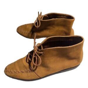 Vtg 1990s Unisa Tan Nubuck Leather Pointed Toe Lace Up Moccasin Ankle Boots 6.5