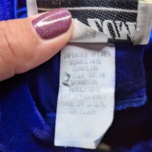 Vtg 1990s Zum Zum Blue Velvet Bow Accent Satin Skirt Maxi Prom Dress 3 4
