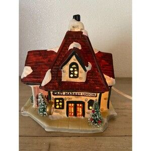 Vtg 1991 Christmas Valley East Market Union Illuminated Porcelain Building