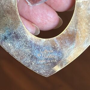 Vintage 1991 Gloria Duchin gold brass heart shaped ornament with floating clear plastic heart pendant