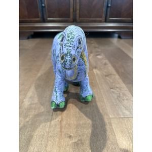 This vintage Applause Purple Plateosaurus Dinosaur Plush from 1992 is a must-have for any dinosaur lover. With a size of 26 inches, it is perfect for cuddling and playing with. The plush toy is in great shape and has been well-preserved, making it an ideal addition to any collection. It is recommended for ages 5 and up, and has not been modified in any way. This charming stuffed animal is sure to bring joy to children and adults alike.