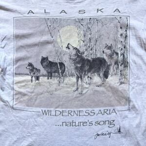 Vintage 90s 1993 Jon Van Zyle Alaska T-Shirt Size L Gray Wolves Nature Animals Wilderness Outdoor Destination Tourist Winter