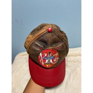 Vintage 1994 World Cup Coca Cola leather brown red 100% leather hat soccer
