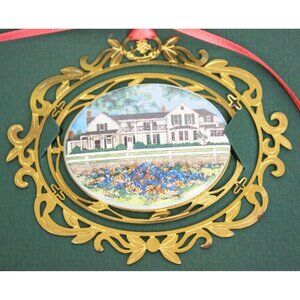 Vtg 1994 LJB Ranch House Texas Ornament Visions of Wildflowers Gold Porcelain