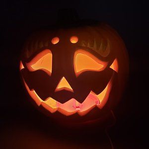 Vtg 1995 Halloween Lighted Jack-o-Lantern Pumpkin Foam Blow Mold 9" Trendmasters