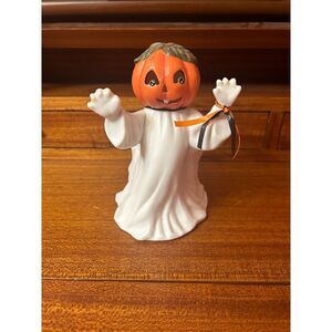 Vtg 1995 New Holland Pumpkin Faced Ghost Planter Candle Holder Ceramic