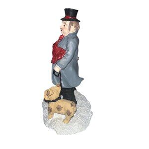 Vtg 1995 Village Square Man Cane Walking Dog Figurine Mervyns Christmas Holiday