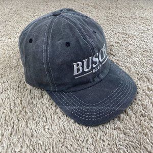 Vtg 1996 Busch Beer Hat Gray Canvas White Stitch Script Adjustable Cap Made USA
