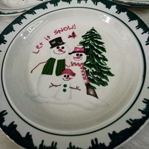 Atico Let it Snow Stoneware Holiday Christmas Salad Dessert Plates, Set of Three.