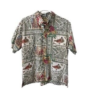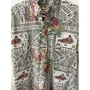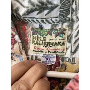 vintage Reyn Spooner limited edition Christmas shirts. The annual issue of these shirts has been a tradition since 1983. Reyn Spooner is renowed for meticulously matching the fabric's printed features when assembling clothing pieces. . It is a half button front style.