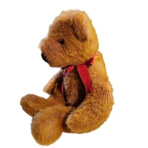 Vtg 1999 Taffybeary TY pinkish purple 14" bear with brown tips and big nose unique. Great condition big maroon and gold trim bow around his neck. He is unique and a bit different than other bears, has a larger nose and wider offset eyes. Very cute. Pink almost raspberry color under that shows through with brown on top. Looks quite European if you ask me.