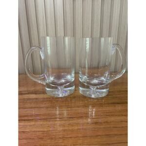 Vtg 2 Controlled Bubble Clear Glass Beer Tankard Mug Pint Tall Drinking Glasses