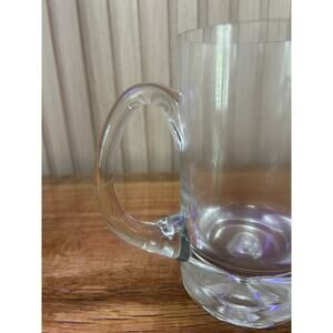 IN CLEAR GLASS,HANDMADE,1 1/2" HEAVY BASE WITH BUBBLE,HANDLE.