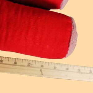 Vtg 2 bears plush w/rubber nose.The girl is dressed in a red corduroy skirt and the boy is dressed in corduroy pants and they wear a red ribbon on their neck that is a little damaged by the ages and neither has the instruction label nor the brand name.from smoke and pet free home