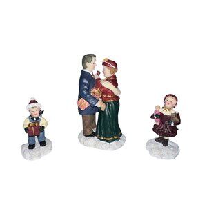 Vtg 2000 Village Square Dancing Couple Children 3 Pc Figurine Mervyn Christmas