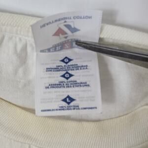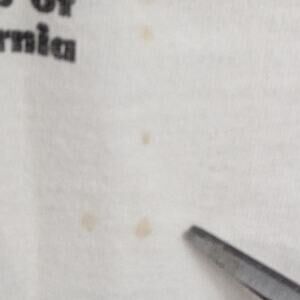 Condition Notes: Creased from storage. Small stains under graphic, small stains right sleeve, collar discoloration. Please see photos.