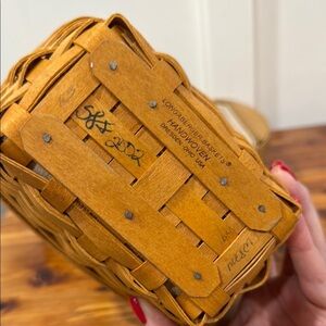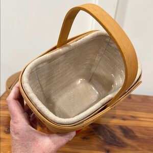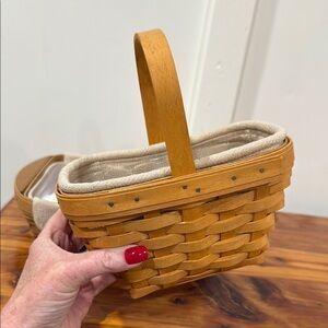 Vtg 2003 Longaberger Warm Brownie Basket & 2002 Handled Basket w/ Tan Liners