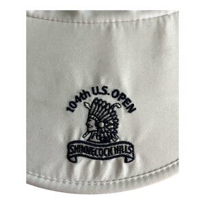 Vtg golf visor from the 104th U.S. Open at Shinnecock Hills (2004). Made by 4Head Lites, this white visor features navy trim, elastic strap, and tournament logo embroidery. A collectible piece of golf history and a great find for U.S. Open fans.