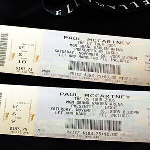 Vtg 2005 US Tour Blk Paul McCartney XL T-shirt, 2 Tickets + 2 Bell Agio VIP Pass