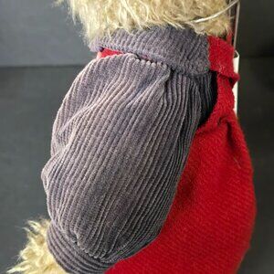 CONDITION: There is definite fabric fading on the blue corduroy on both bears. I believe they were set in a window for too long. Otherwise there are no other flaws to note. One stand is included. Please see all photos for details.