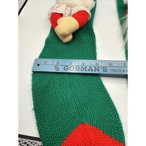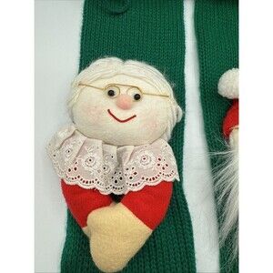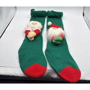 Vtg 22" Knit Christmas Stockings Santa & Mrs. Claus Pair Green Set Mom Dad