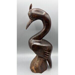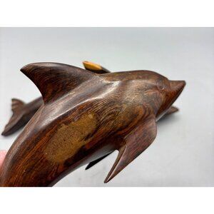 Vtg 3 Pc Ironwood Hand Carved Wood Pelican Crane Dolphins Figurines Nautical
