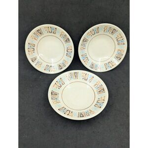 Vtg 3 Taylor Smith Moderne Fruit Dessert Bowl MCM Vintage Atomic 1960s 5.6" and 1.25" height.".Unmarked but part of a larger collection (some of which are marked). Pre owned in overall fair to good condition due to wear to finish on the decor on plate and also two of the bowls have a chip around the under rim. For more details please study all pictures.