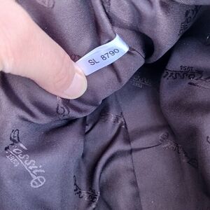 It's a brown, Suede leather small Hobo purse. It has a braided handle and tassel detail. There is light signs of wear at the corners of the purse. It's a vintage Y2K style. See photos for condition