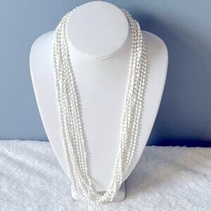 Vtg 4 or 8 Strand Plastic Bead Necklace White Beaded Mid-Century 60s 70s 80s