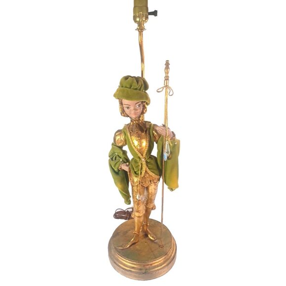 Vtg 40" MCM Italian Pixie Elf Statue Table Floor Lamp Torchiere Green Gold Leaf