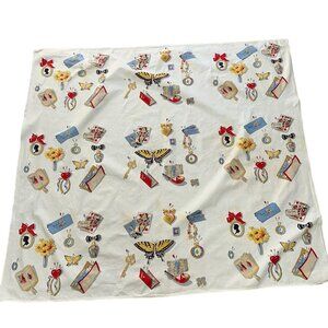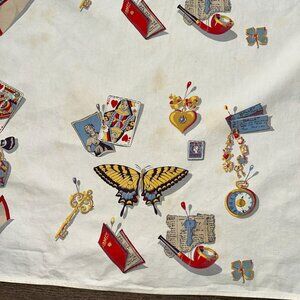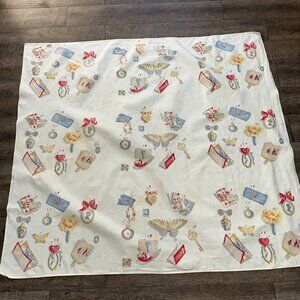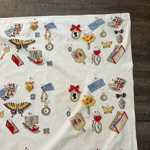 Vtg 40s 50s Wilendur Tablecloth Mementos Square Rare 54x49 Butterfly Key Heart