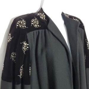 Vtg 40s 50s Wool Velvet Embellished Open Dress Over Coat Black Silver