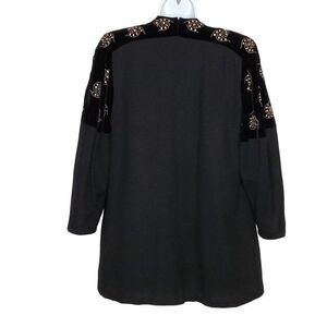 Vtg 40s 50s Wool Velvet Embellished Open Dress Over Coat Black Silver S **See