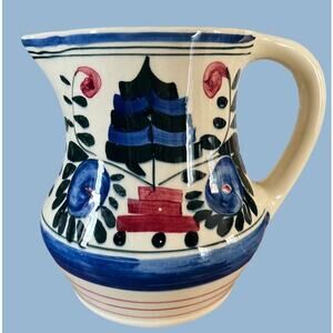 Vtg 40s Persian Ware Hand Painted Pitcher Vase German Farmhouse Abstract Whimsy